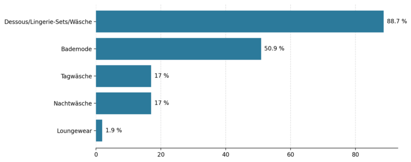 Außerdem wurden genannt (in alphabetischer Reihenfolge): Aubade, Change, Elomi, Fantasie, Lascana, Körbchen Wien, Lisca, Lise Charmel, Nina von C, Passionata, Sassa, Simone Pérèle, Speidel, Susa, Triumph, Ulla, Wacoal