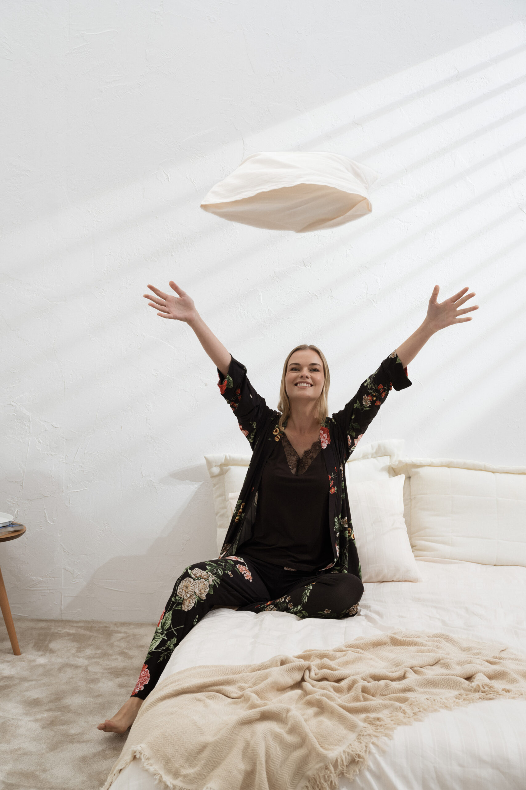 Von langärmeligen Pyjama-Sets und fließenden Nachthemden bis hin zu eleganten Roben und mehrlagiger Homewear ist jedes Teil darauf ausgelegt, Geborgenheit, Stil und mühelose Eleganz zu vermitteln. Nachhaltigkeit bleibt ein zentraler Wert bei Goldenbay. Alle Produktionspartner erfüllen den OEKO-TEX® Standard 100 und gewährleisten hautfreundliche, verantwortungsvoll hergestellte Produkte mit Respekt für Mensch und Umwelt. Die AW26 Kollektion von Goldenbay steht für einen modernen Lebensstil – ruhig, selbstbewusst und bewusst gestaltet.