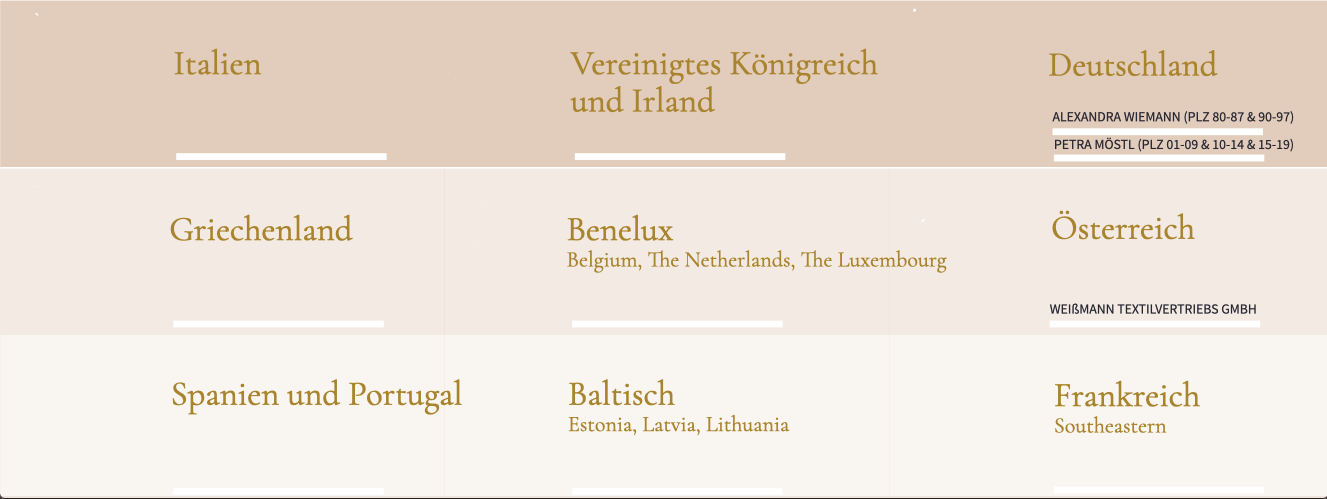 „In Österreich und der bayerischen Region Deutschlands hebt sich Goldenbay durch zeitgemäße Kollektionen und eine konstant hohe Produktqualität hervor. Das Kundenfeedback ist sehr positiv, und die Zusammenarbeit ist unkompliziert und professionell. Bereits in den ersten beiden Saisons konnten wir zahlreiche neue Kunden für die Marke gewinnen.“ Weißmann Textilvertriebs, Deutschland & Österreich
